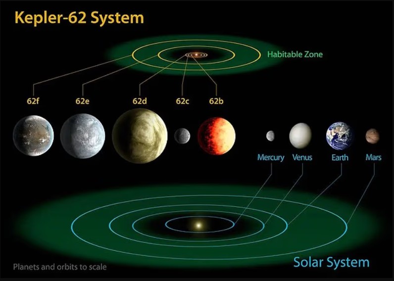 Kepler-62e and Kepler-62f are located 1,200 light-years from Earth, within the habitable zone of their star. Both planets could have liquid water, making it more likely that life could arise.