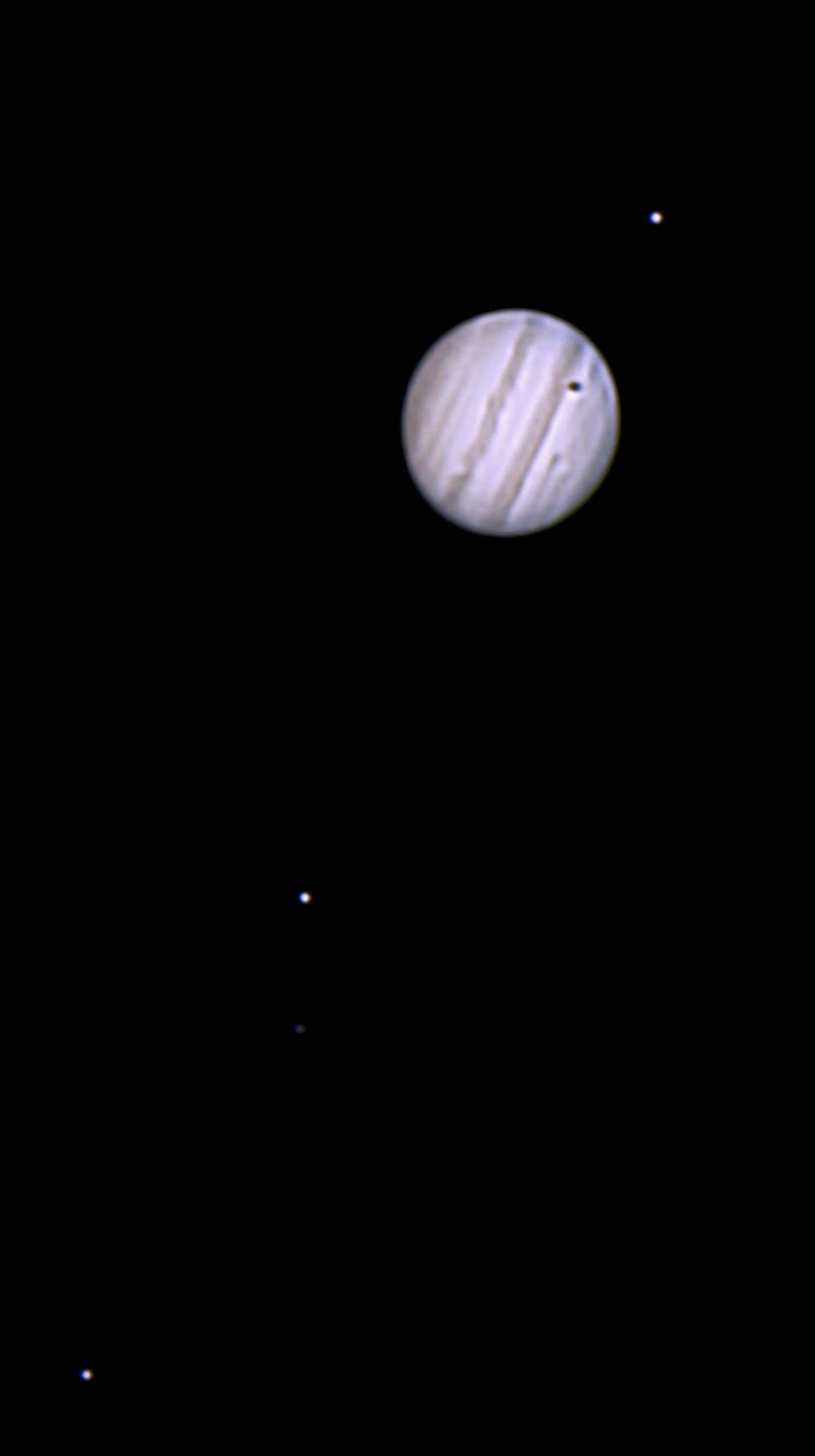From top right (west) to bottom left (east): Ganymede, Io, Callisto, and Europa!