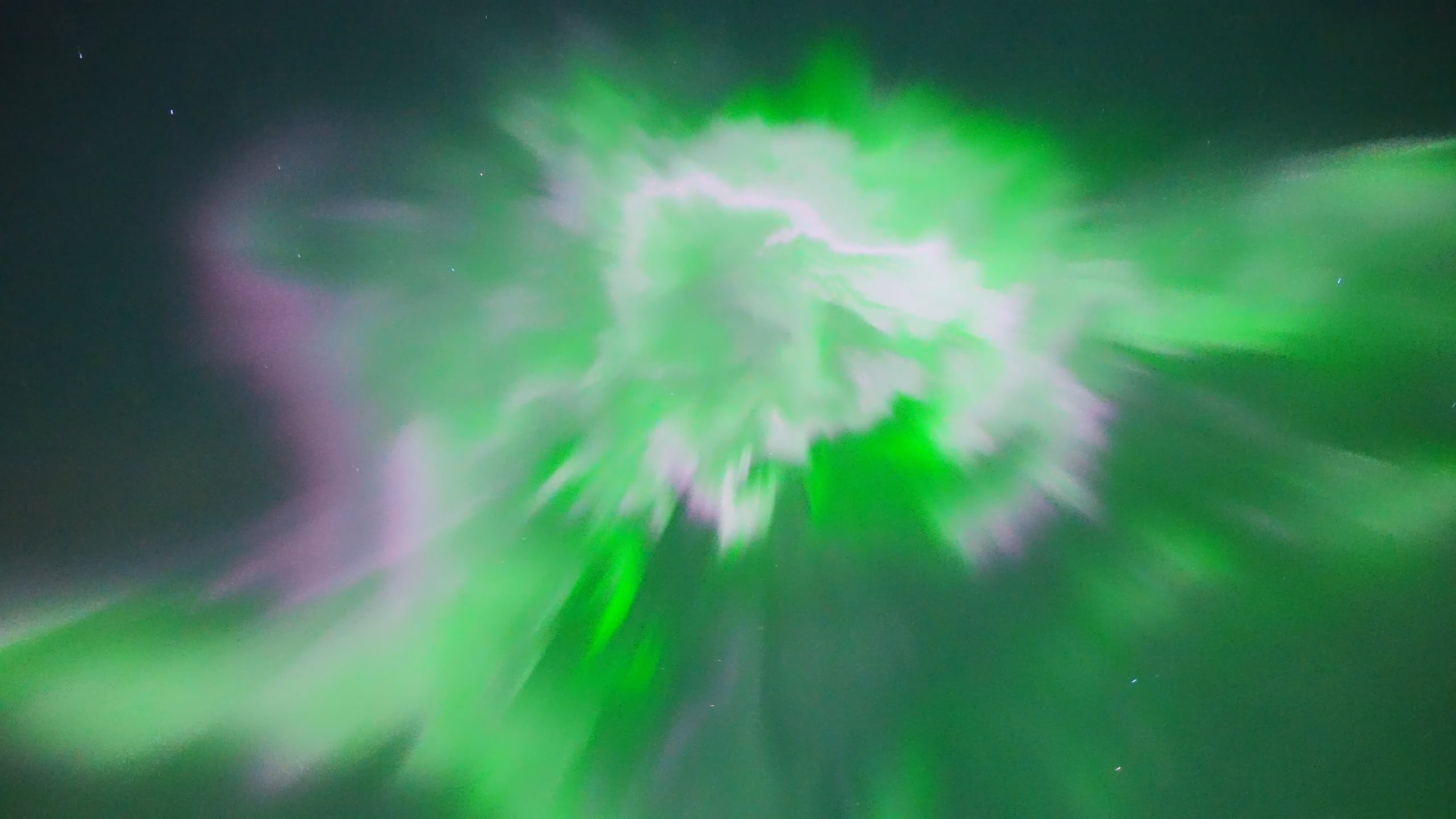It was breathtaking to watch how that rather static green arc suddenly developed into those rolling bands, dancing rays and stunning corona. The colors were readily visible to the naked eye.