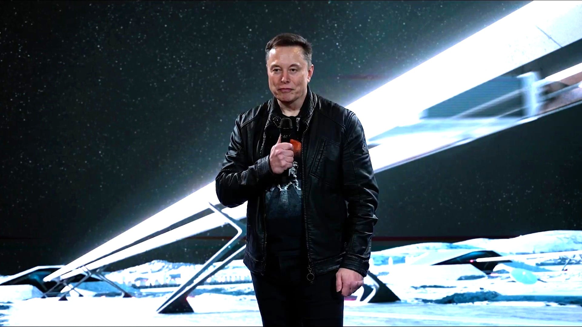 Elon Musk talks about his vision for industrializing the moon, in front of a representation of a lunar mass driver. (xAI via X)