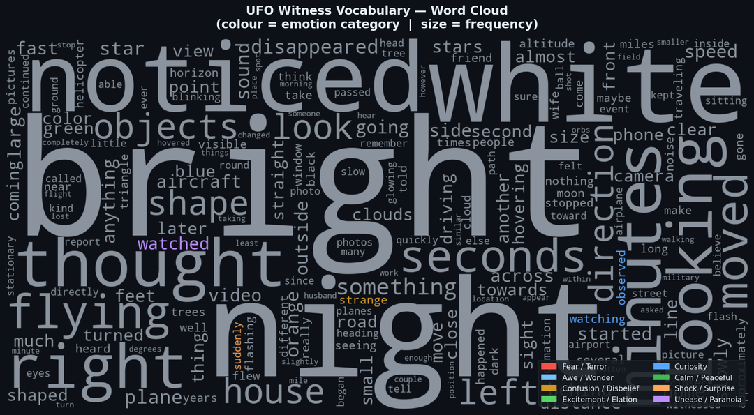 UFO Witness Vocabulary Word Cloud