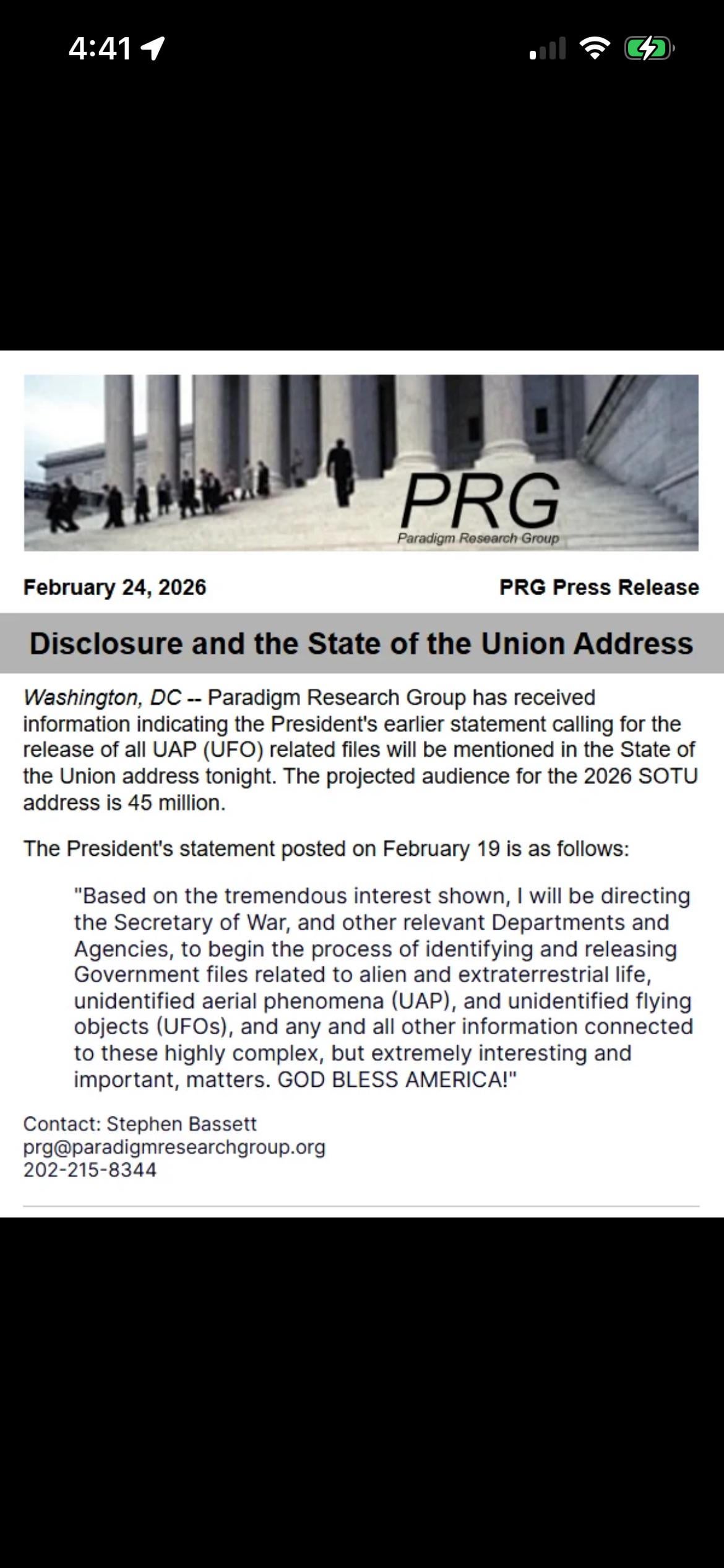 Just saw this being published from the Paradigm Research Group, headed by Steve Bassett. We will be waiting to see if this does in fact happen, and what potential expansion on his statements may be made.
