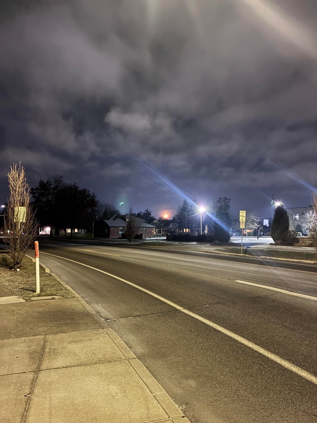 Shadowmoth on February 26, 2026 7:38 am Pic 1 and 3 are definitely lens flare from the streetlight with camera shake. Go back in the day and check the spot with the three dark shadows. Most likely they will be aerial visibly markers on power lines. If they’re not there you might have gotten something interesting.