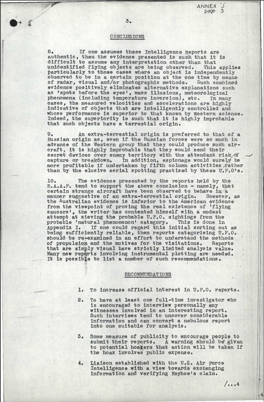 “The evidence presented by the reports held by the R.A.A.F. tend to support the above conclusion — namely, that certain strange aircraft have been observed to behave in a manner suggestive of an extraterrestrial origin.”