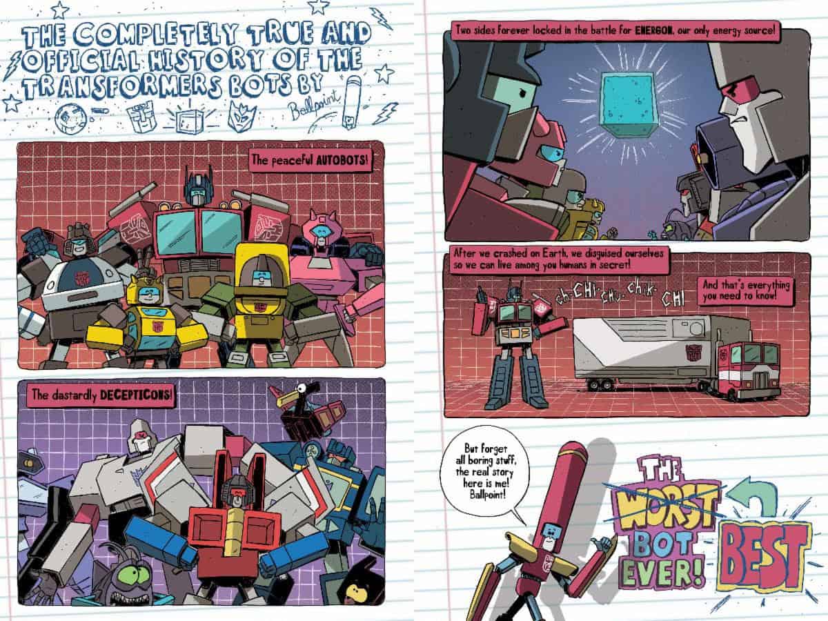 Brian ‘Smitty’ Smith had this to say: “I’m absolutely thrilled to bring more Ballpoint to both longtime and new TRANSFORMERS fans. This book has something for everyone, even if you hate pens!”