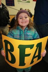 Aiyana proudly displays a sign at a Comet game.