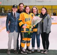 As sisters, Seneca (Lamos) O’Bryan and Aiyana Lamos have many shared experiences. One of those includes being part of the Comet hockey team at BFA-St. Albans. Aiyana is a freshman at BFA-St. Albans and Seneca graduated in 2023 and is a senior at Champlain College where she’s completing a double major in Graphic Design and Interactive Design