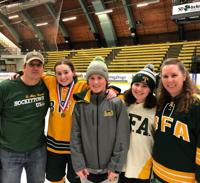 The Lamos family celebrates the 2022 Comet hockey state championship with Seneca.
