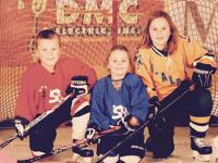 Siblings Baylor, Aiyana, and Seneca Lamos (now O’Bryan) pose for a photo while all three were playing for the St. Albans Skating Association as kids