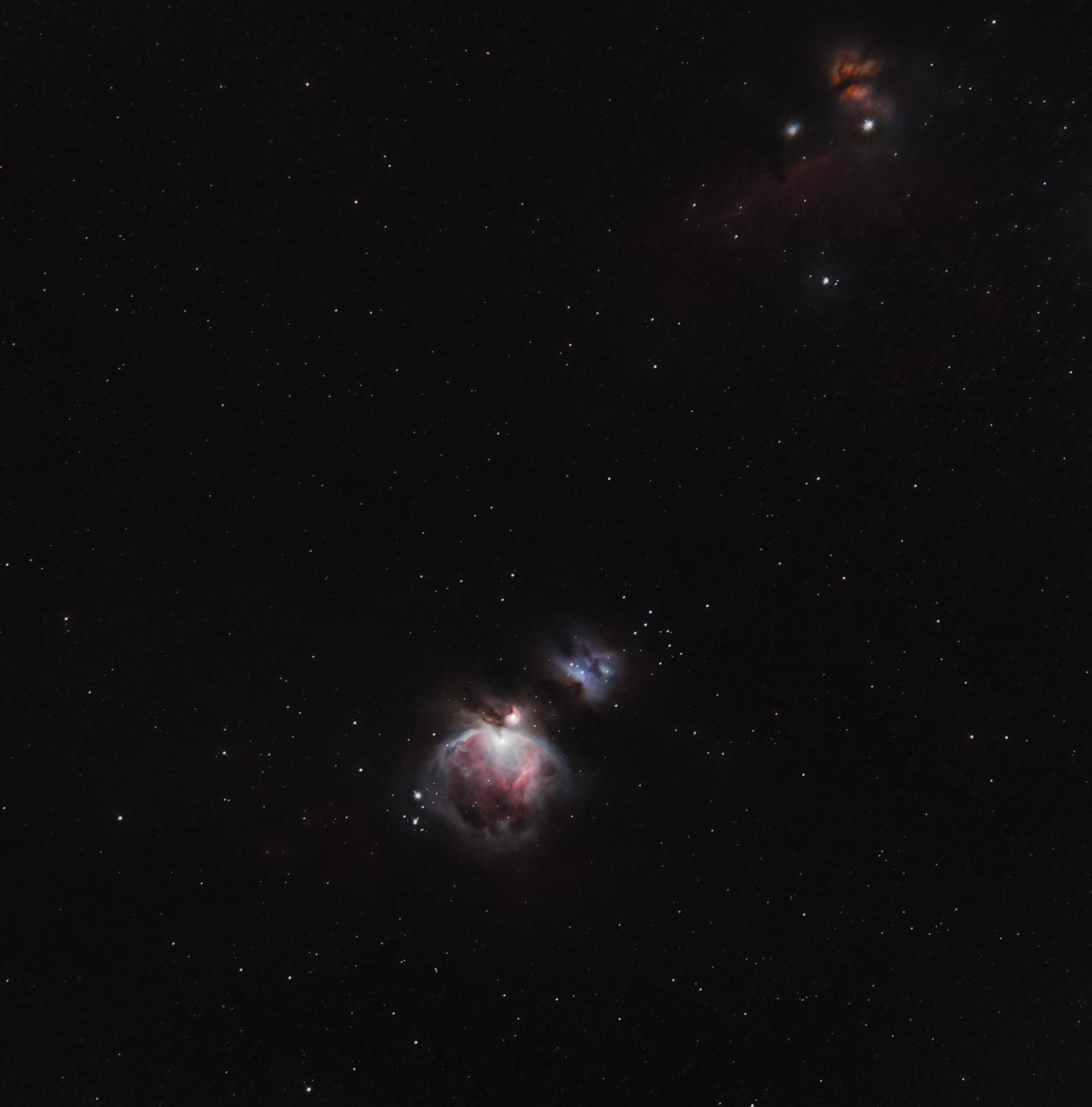 I also see the horse head nebula and flame nebula. Nice wide field view you captured
