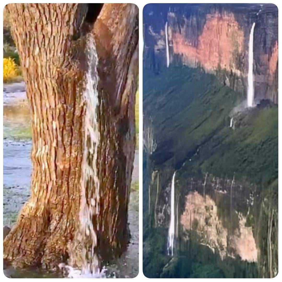 A video from India, some guys begin to chop a tree in Karnataka.. Immediately, water starts gushing out of it. When looking to places like Mt Roraima, huge "waterfalls" continuously running, from where? What is the water source ?