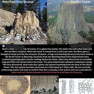 The Kiowa Peoples legends describe 'Devils tower' as the remains of a giant Tree also. This is a recurring theme for each of these so called mountains.. 1977’s Close Encounters of the Third Kind shows flying saucer atop the Devils Tower.