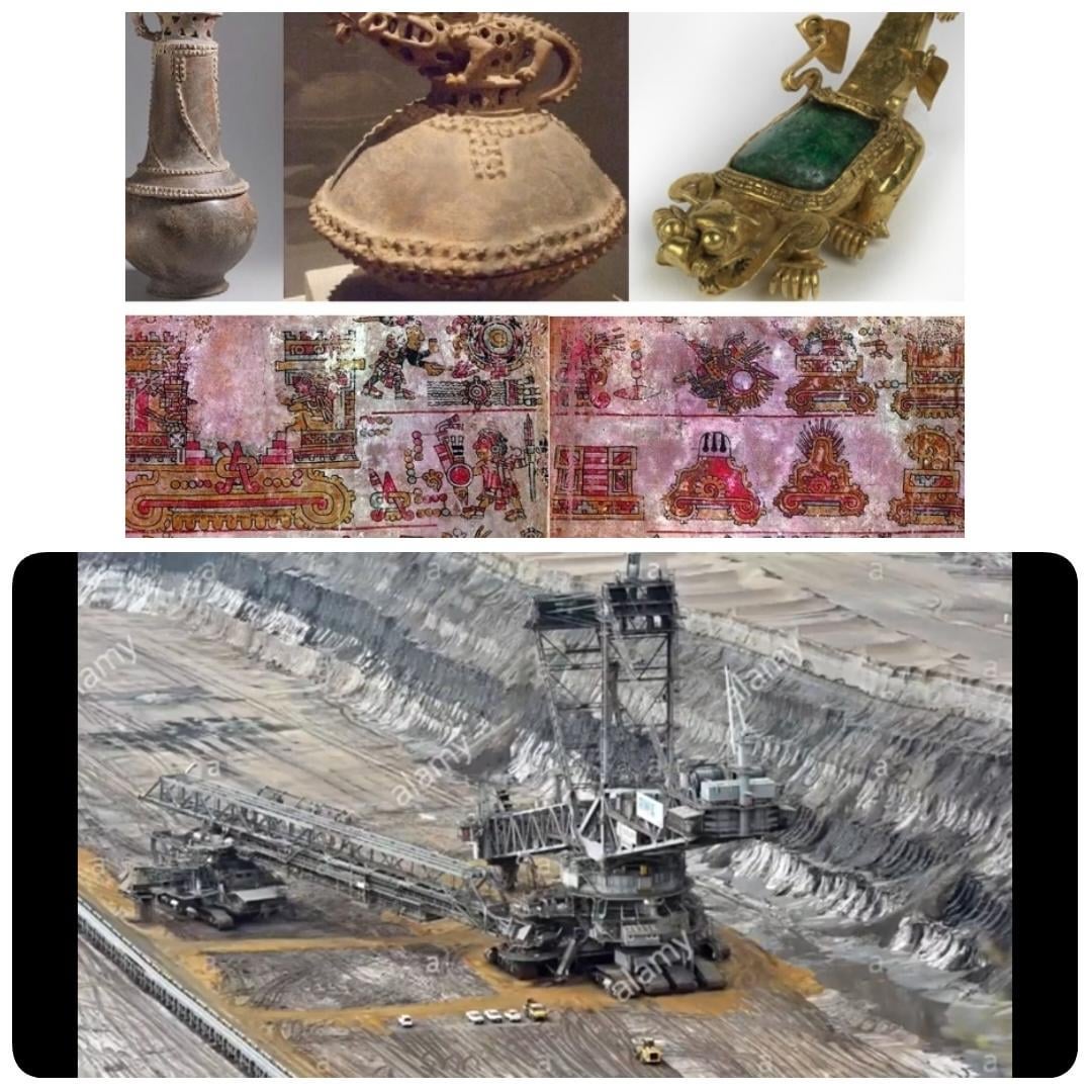 Some ancient cultures have described & depicted what looks like huge bucket wheel excavators. Once all the minerals, (and what not) are taken out, we end up with Spoil Tips. A spoil tip (also called a spoil bank, boney pile, gob pile, bing, batch, boney dump or pit heap) is a pile built of accumulated spoil –These piles are known to burn profusely on the inside. Like a compost pile or Pyr a Mid(fire in the middle). In the film the massive trees were cut down  to mine unobtanium for energy conduction, as the RDA suppresses the development of alternatives on Earth..