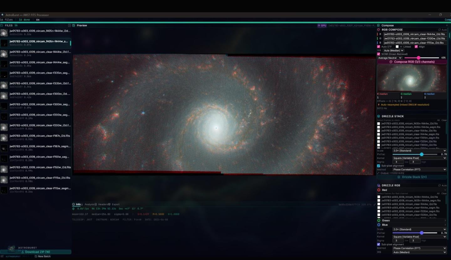 Hey everyone. Back with another update. This time the focus was on making RGB composition work across different detector resolutions, which was a limitation when working with JWST NIRCam data.