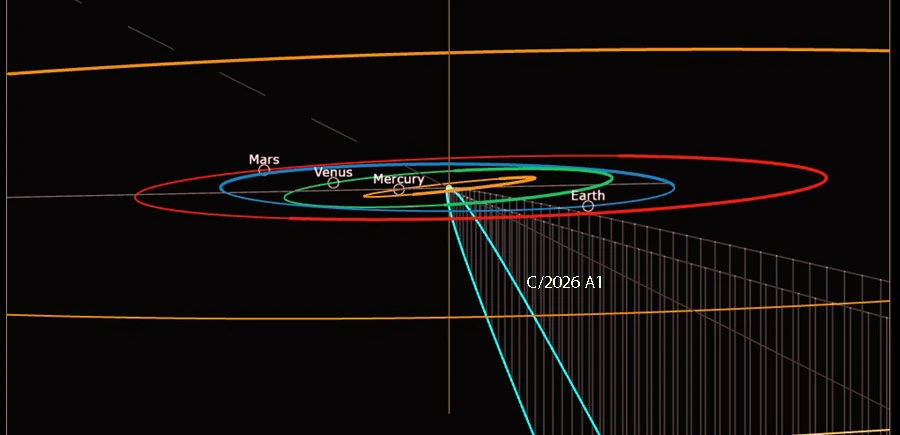 The orbit of comet MAPS is inclined by 144.5° to the plane of the ecliptic, and its orbital period is approximately 1,175 years. Source: MAPS 2026 / skyandtelescope.org