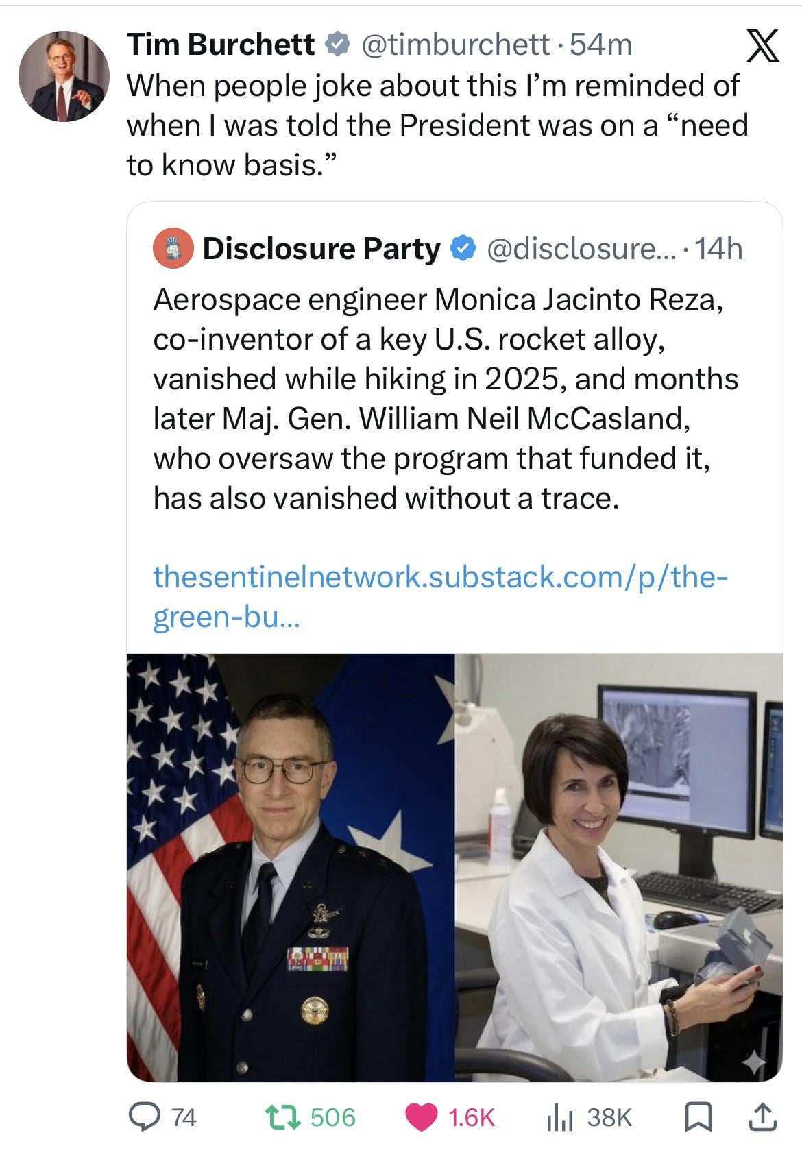Who would have thought the President isn’t clued in on E.T visitations and technology?!?! Wow Side note: Monica Jacinto Reza was incharge of the same Top Secret program the Major General was working on before they both disappeared👁️ by Rich_Gas7886