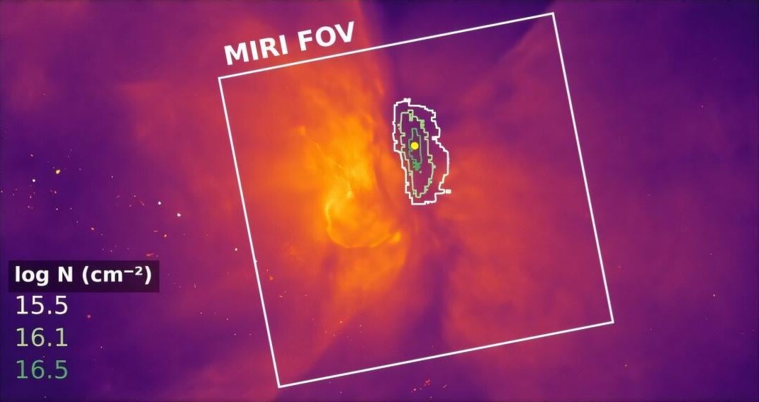 Scientists also found that the balance between gas and ice in this nebula differs from that seen in younger star systems, indicating a different formation process. This discovery highlights the need for more detailed observations to better understand how complex chemistry, including ice formation, occurs in these extreme environments.