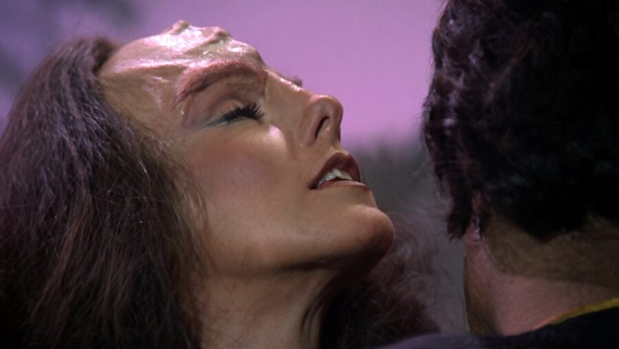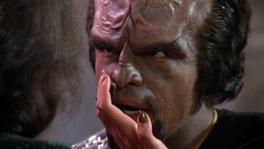 For context, “The Emissary” (not to be confused with the DS9 episode of the same name) is an episode where the Enterprise encounters a group of Klingons who have been in suspended animation for the past 75 years. In an effort to make a diplomatic solution work, Captain Picard works with K’Ehler, a Federation ambassador. She is also a Klingon who has a history with Worf, and these two end up hooking up; she will later give birth to Alexander, a son Worf will have to raise on his own (until he doesn’t) after K’Ehleyr is brutally murdered.