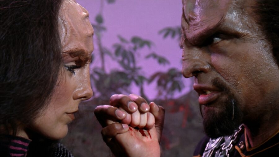 According to Captains’ Logs: The Unauthorized Complete Trek Voyages, this included Klingon mating rituals. “I came up with that thing where [K’Ehleyr] digs into [Worf’s] hand and there’s all that blood,” Bole said. “I did that on the set. I was wondering what these people do, and I had the image of bones breaking and felt that’s what they do when they get it on.”