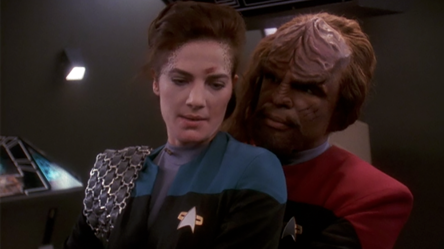 This quick improvisation became one of the key elements of Klingon lore, one that would be referenced in several other episodes. Previously, all Worf had really said about sex was that he wouldn’t be trying it on the ship because he thought Earth women were too fragile. This implied that he was worried about humans simply thinking he was too rough in bed. Thanks to “The Emissary,” we know that Worf is worried about fragile partners because Klingon mating is rougher than rough, regularly involving breaking bones and making your partner bleed.