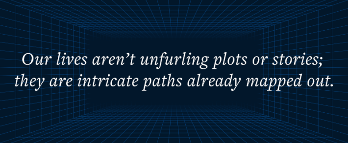 Our lives aren’t unfurling plots or stories; they are intricate paths already mapped out in four dimensions. Each one of us is a highly elaborate “mathematical braid … in spacetime,” as Tegmark puts it. In this view, every cell within your body—your neurons, muscle cells, the blood cells pulsing through your arteries, capillaries, and veins—has its own intricate, interconnecting life path carved out through the block. And not just every cell, but every atom. Each of us is made up of trillions of strands in spacetime, all with their own complex trajectory. Your whole life might look like a sort of tree carved into the block, with disparate strands coming together at one end, representing your conception and birth; gradually thickening into a trunk; and then at the other end splaying out into finer and finer branches before disintegrating completely at the point of your death and decomposition. Tegmark suggests that even consciousness will one day be understood as a fixed, mathematical structure. There is no room for movement, flow, or happening. Reality doesn’t become. It just is.