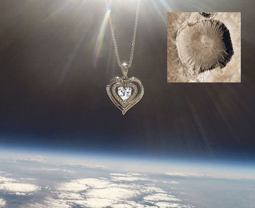 THE METEOR CRATER PENDANT: Have you heard of Moissanite? It’s a very rare mineral discovered by 19th-century chemist Henri Moissan in Arizona’s Meteor Crater. At first, he thought it was diamond, but later realized it was even more rare. It’s a diamond lookalike that, until the 1950s, was found naturally only in meteorites.