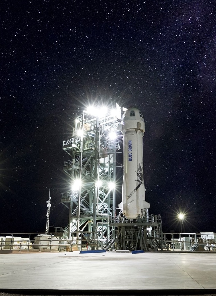 The New Shepard reusable suborbital rocket system from Blue Origin based in Kent, Washington