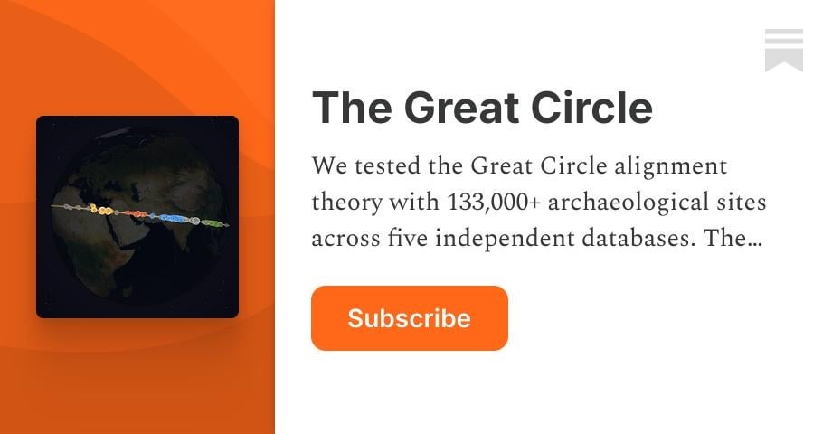For context: I'm the same researcher who tested the Great Circle alignment – a different claim, first proposed by Jim Alison around 2001, that Giza, Nazca, Easter Island and other sites fall near a single circle around the Earth. That one IS statistically significant -monuments cluster on it at 5× the expected rate across 8 databases, while settlements don't. Same methodology, same databases. One holds up, one doesn't.