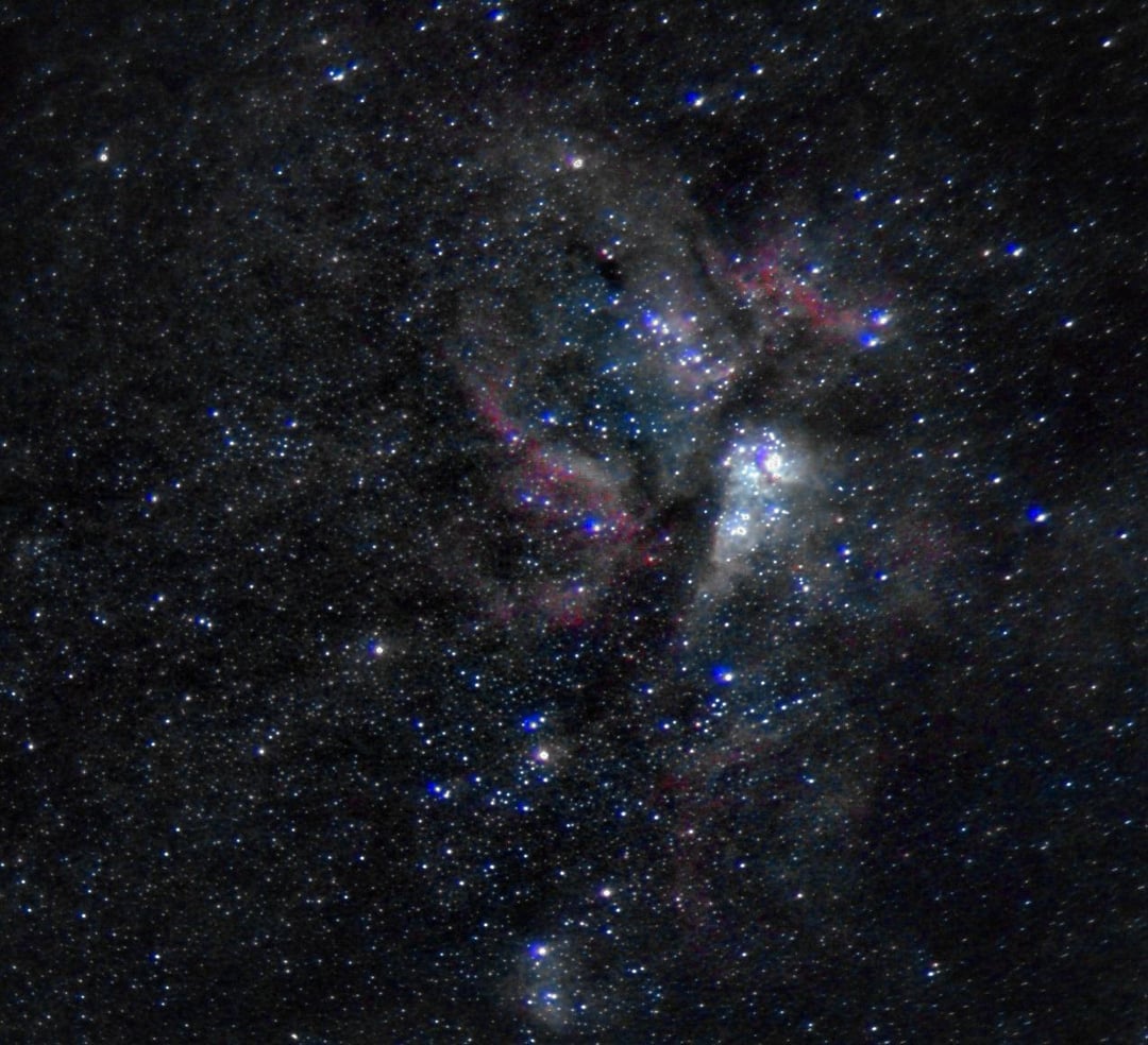 Processamento: após uma festa cheguei em casa as 11:30 como não tinha 2 tripé para observar e fotografar wide campo com meu phone decidi aprimorar a nebulosa Carina onde fotografei por 1 horas com Frames de 2 segundos (Sim sem rastreamento)