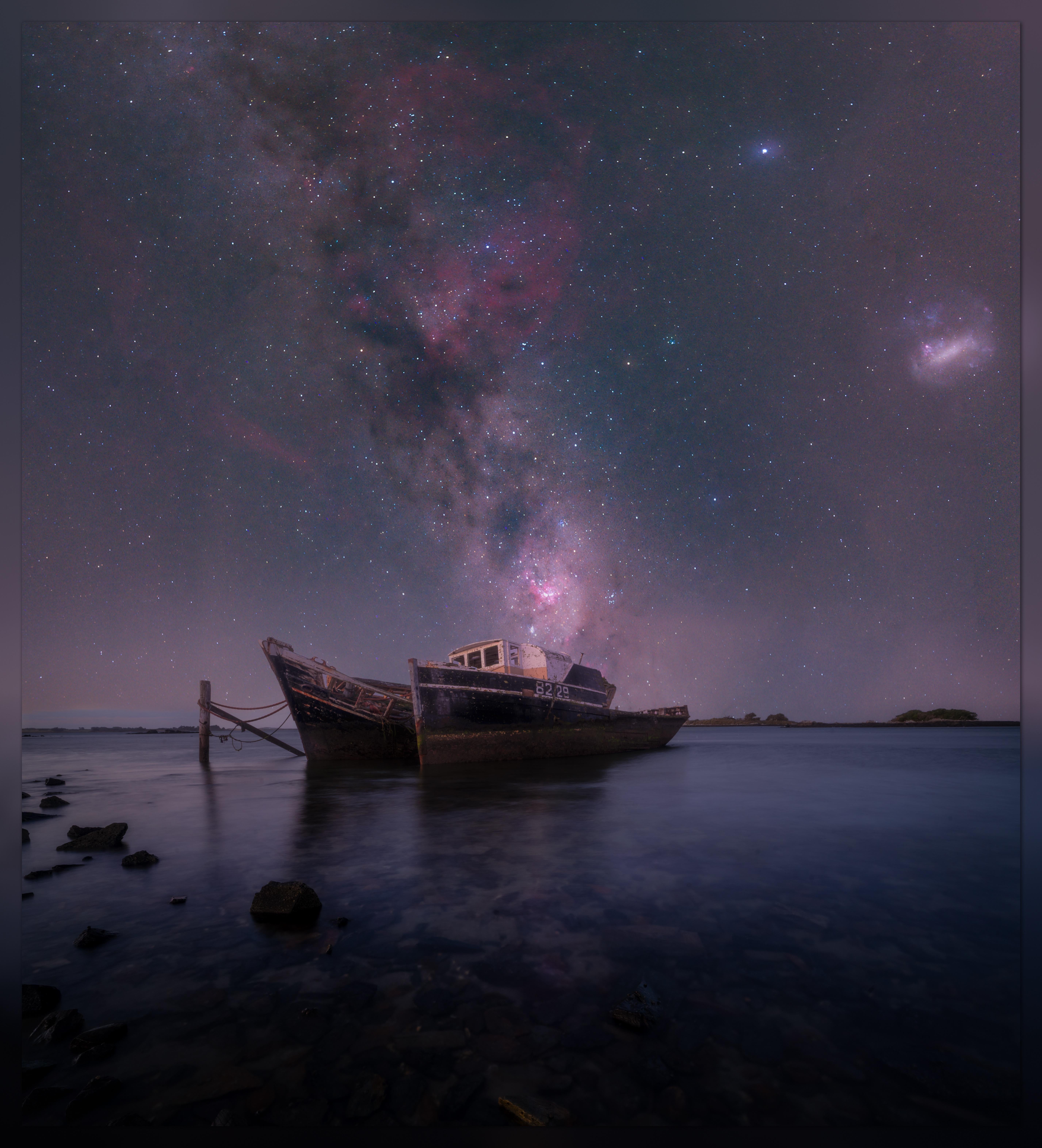 I then edited the foreground in Lightroom, the sky in siril and autopano giga and then merged them both in photoshop.