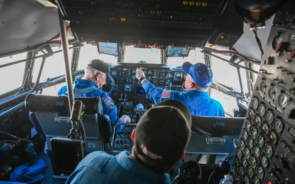 There are no digital screens or fly-by-wire systems, just analog dials and mechanical controls straight out of the 1950s.