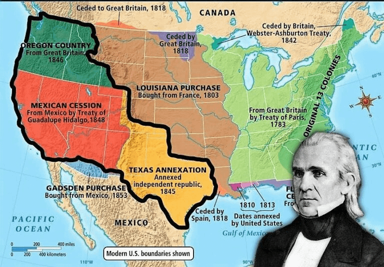 What if Polk never was president. James K. Polk added more territory to the U.S. than any president except Thomas Jefferson. During his single term (1845–1849), Polk acquired the land that now makes up California, Nevada, Utah, Arizona, New Mexico, Washington, Oregon, and Idaho.