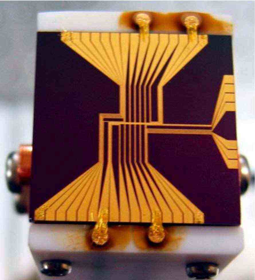 Microchip atomic cold trap developed at the Institute for Laser Science in 2005 of the sort that might help unravel the mystery of gravitational waves (Credit : Ken-Ichi Nakagawa)