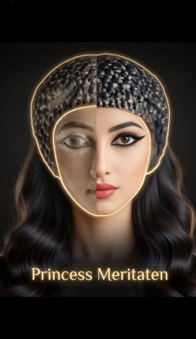 ​Meritaten, the eldest daughter of Akhenaten and Nefertiti, serves as a perfect biological and historical record. Her famous limestone and quartzite statues found in Amarna show: