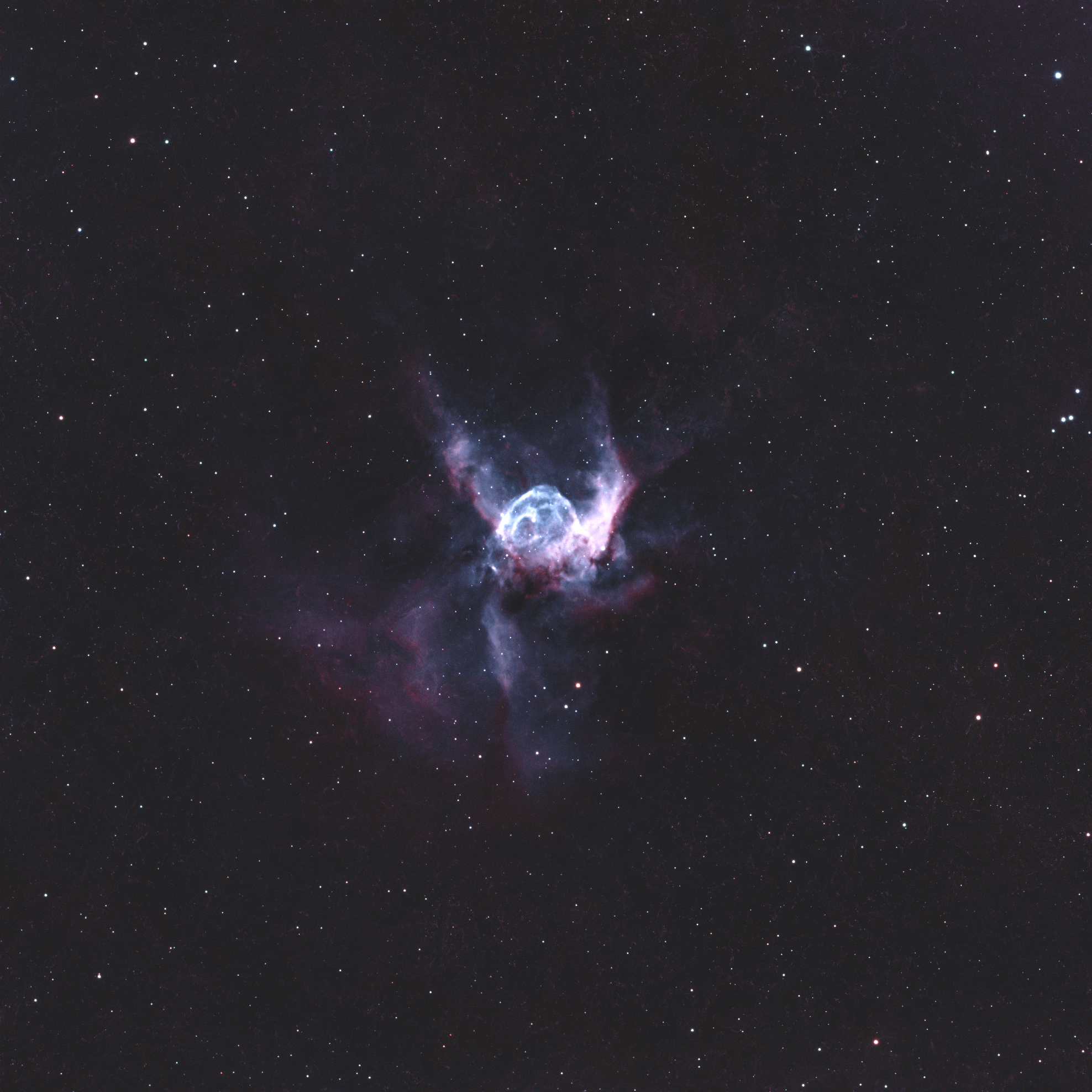 My latest capture is a narrowband image of Thor's Helmet, NGC 2359. This target is about to disappear so I wanted to grab a few hours while I could!
