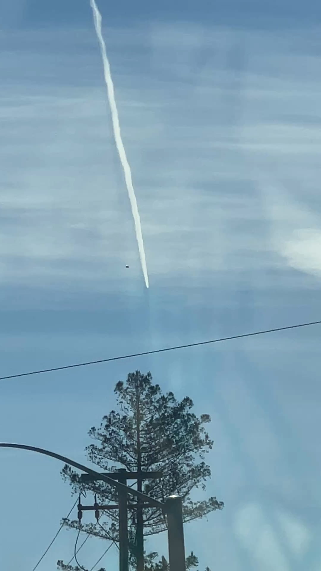 I was recording the trails because I thought it was odd that before the plane flew forward there was a space opening up in front of it. It was not until I went to see it at home that I noticed the object. I was facing south and the shadows were behind me.
