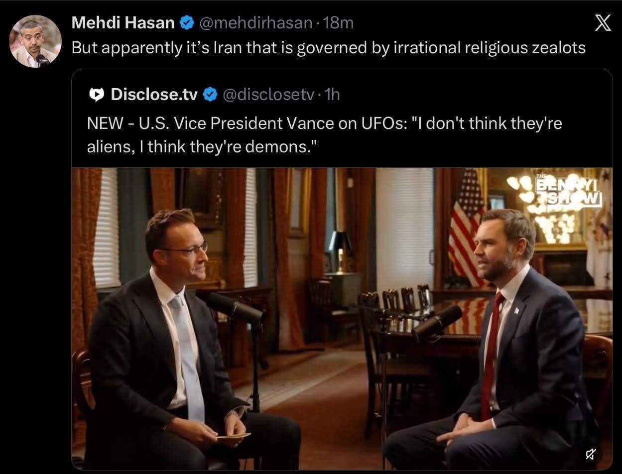 What if they haven’t been tight-lipped for seventy years because the MIC wants to keep the tech for themselves, but because American religious extremists will go absolutely bonkers if the truth is revealed?