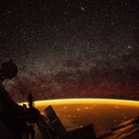 An astronaut aboard the International Space Station shot a picture of Earth from 250 miles over Australia. Airglow—the orange hue—comprises diffuse bands of light created by atoms colliding in the atmosphere near the interface of Earth and space. Studying airglow is helping scientists to understand the connections between Earth weather and space weather.
