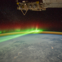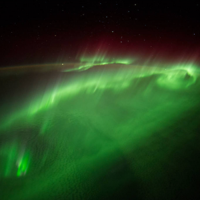 Flying 200 miles above Earth has given the crew members on the International Space Station the opportunity to document the changes and events on their home planet from the Station’s unique perspective. In August 2014, the ISS flew through a green aurora. An aurora is observed when charged electrons from solar wind interact with Earth’s atmosphere.