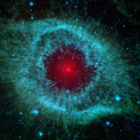 Launched in 2003, the NASA Spitzer Space Telescope is orbiting 353 miles above Earth. In 2007, it took an infrared image of the Helix nebula (sometimes referred to as the “Eye of God”). This nebula is in the constellation of Aquarius, 650 light-years away.
