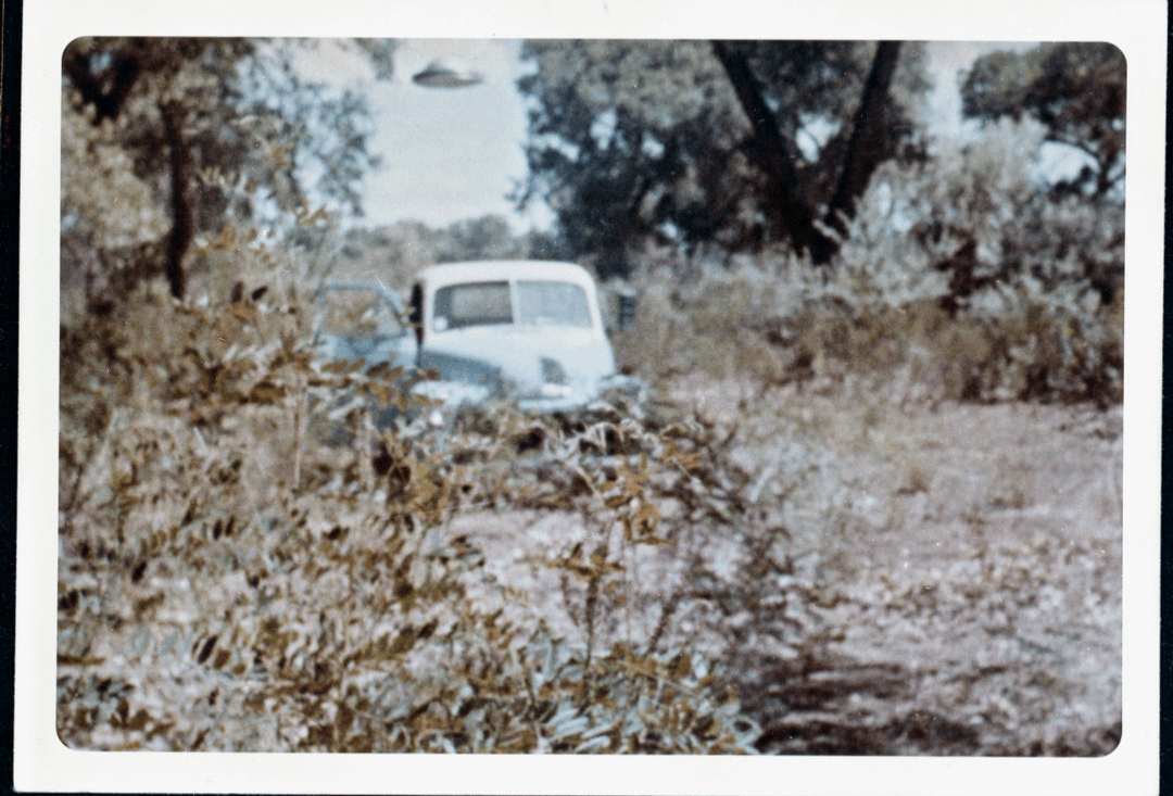 The Convenient Trees: You will notice that the UFO is perfectly framed by the overhanging branches of the tree. Analysts strongly suspect the “saucer” was a custom-built model (likely made from aluminum hubcaps or lamp parts) that was simply suspended from those branches using thin fishing line, or tossed into the air right in front of the lens.