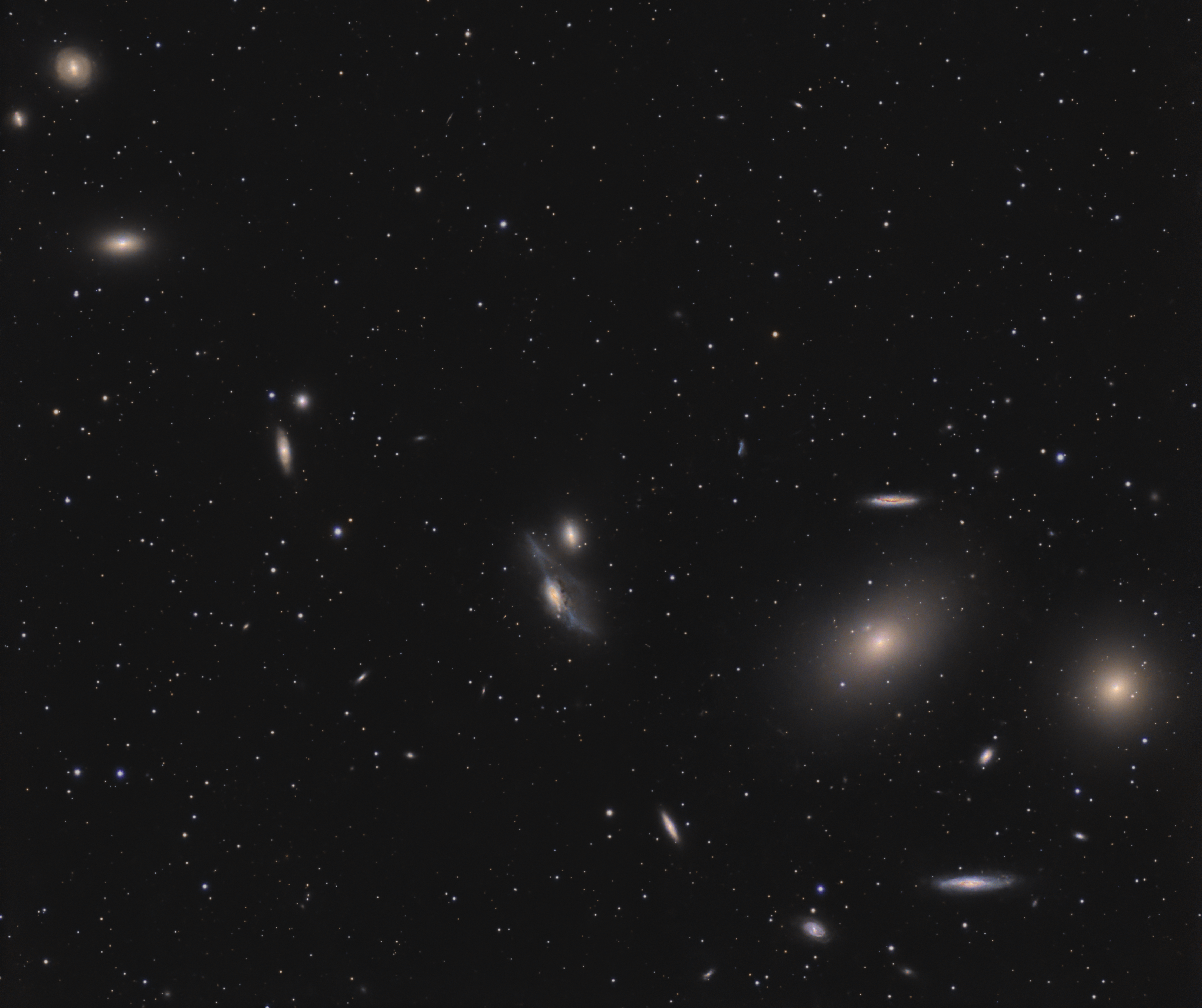 I have been meaning to image the Markarian Chain for a long time, but I was hesitant because of the small FOV of my seestar s50. I settled on a 2 panel framing so that I could still get significant integration time, but it does feel a bit tight. There are 20h of integration on each panel for a total of 40h, taken as 20s subframes.