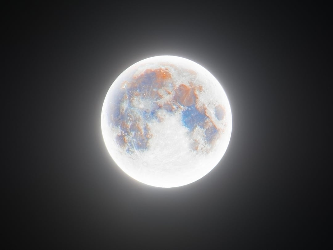 Shot on my Nikon D500 & Tamron 150-600mm, composite of two photos (one overexposed for glow, another stacked for lunar detail and mineral colors)
