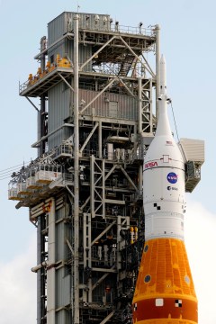 The 32-story Space Launch System rocket is poised to blast off Wednesday evening with four astronauts. After a day in orbit around Earth, their Orion capsule will propel them to the moon and back. There are no stops — just a quick U-turn around the moon. The nearly 10-day flight will end with a splashdown in the Pacific.
