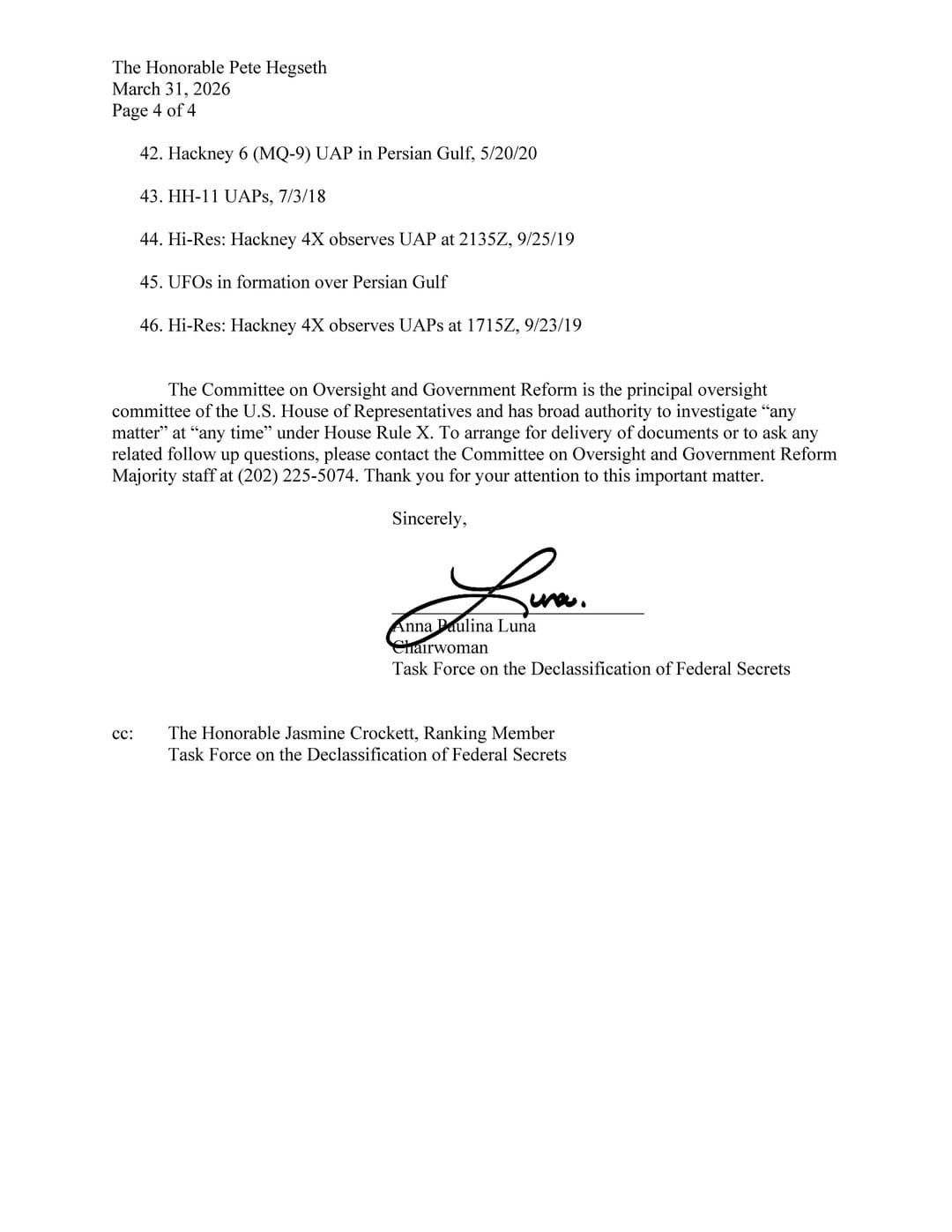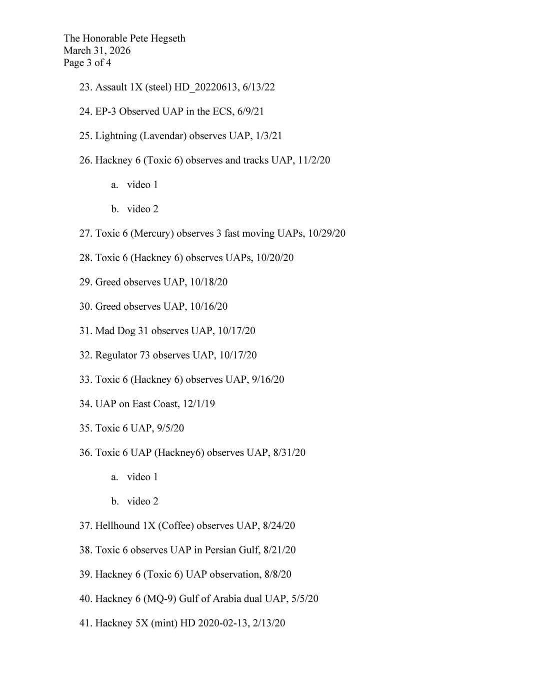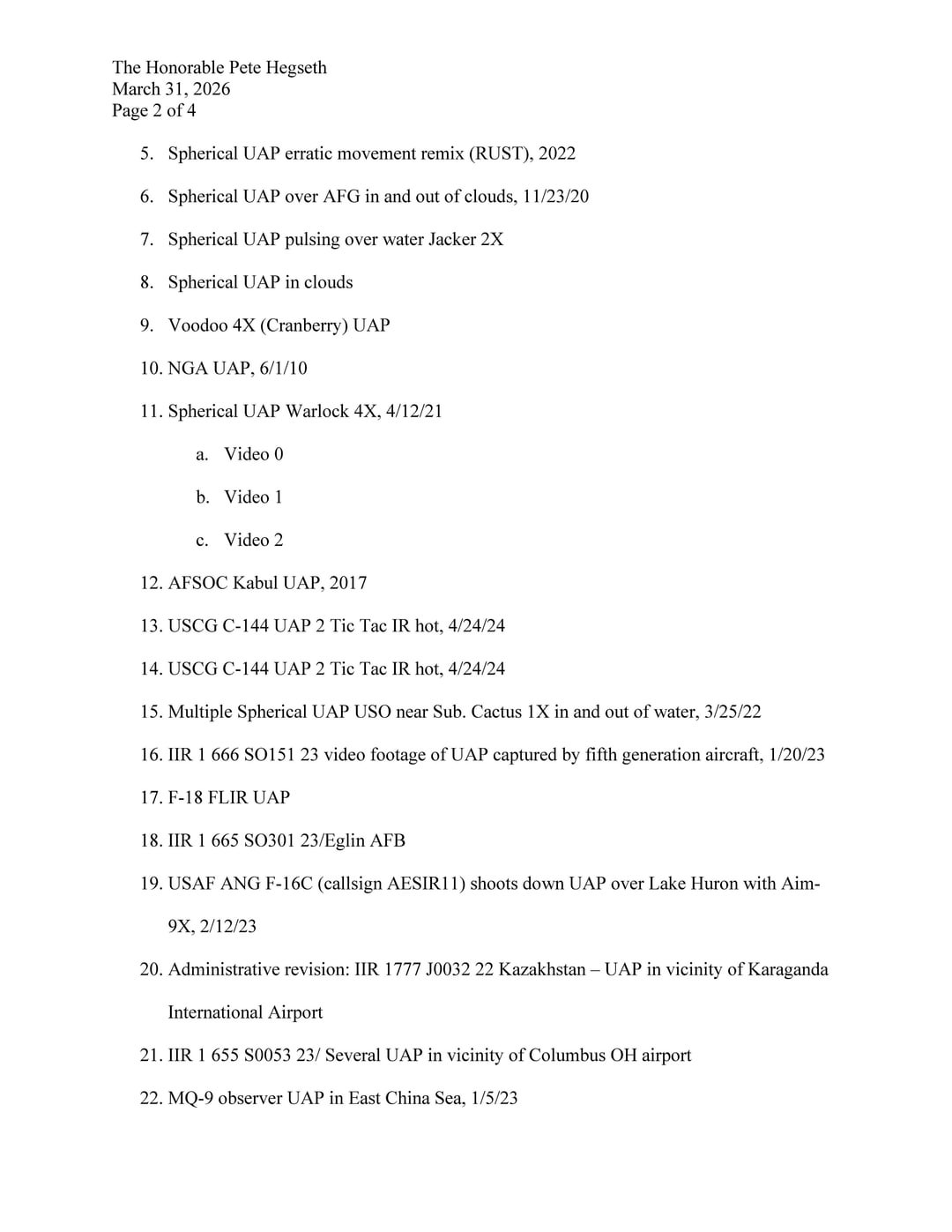 I understand the seriousness of the matter and the curiosity of the public to understand. It’s been suppressed for a very long time and the critical aspects of it make it the most sensitive topic any government has ever dealt with; however, there are several words in these pages that should be classified and blacked out. I can recognize at least three words that by releasing this letter to the public, are jeopardizing ongoing missions. This is extremely irresponsible. To be clear, I’m not referring to the UAP videos. By all means, release them all, there’s nothing in any of them that all of you haven’t seen yet. Half a dozen of them are even public, but in lower rez.