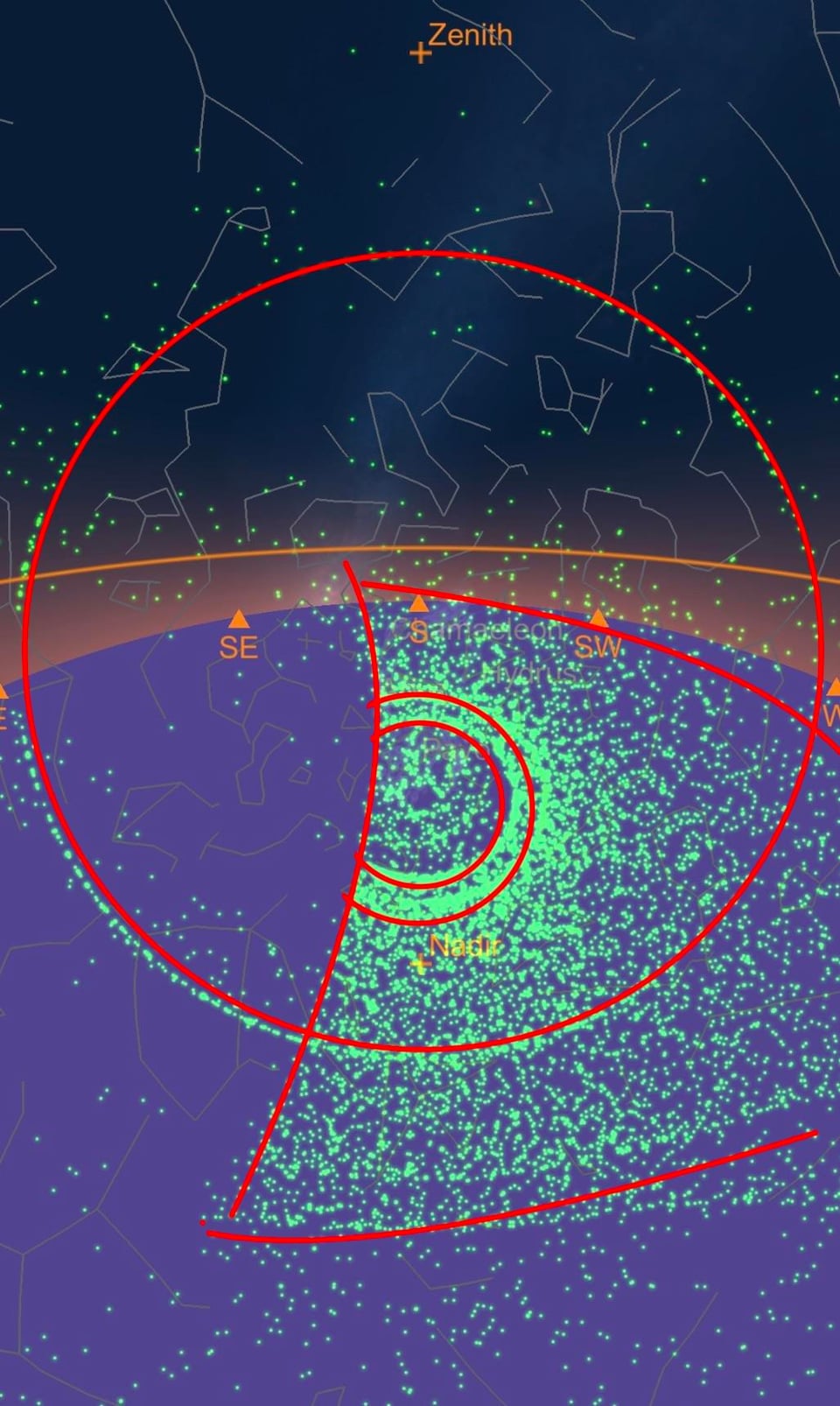 The large narrow ring is from Geostationary satellites which all hug the ecliptic equator.
