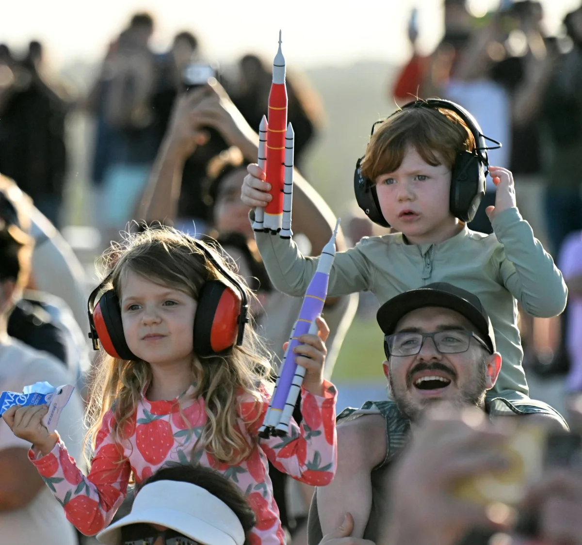 Two young spectators clutched their toy rockets at a viewing area on the A Max Brewer Bridge in Titusville, Florida. Young children today could well be the astronauts of tomorrow who will spearhead missions to Mars… and beyond.