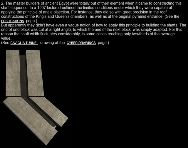 - Gantenbrink (who sent the first robots up the "air-shafts") came to the conclusion that the builders weren't capable of calculating the more complex angles of these shafts correctly.