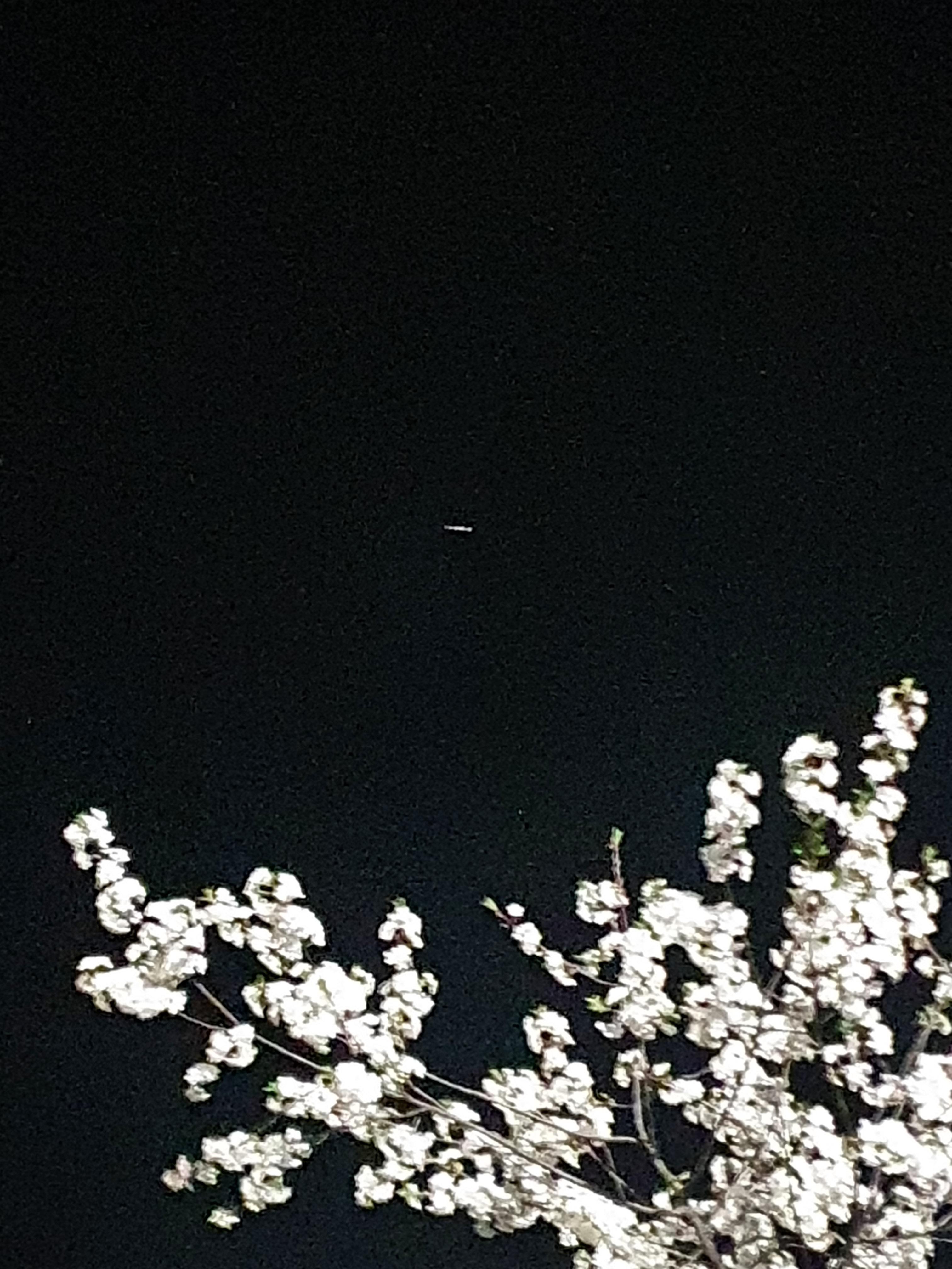 I was walking my dog a couple minutes ago and was looking at the sky, in the sky I saw a trail of satellites following each other so I tought they were the starlkink satellites. so a couple of the pass by and on the opposite direction I see this bright long thing moving very slowly, I kinda took this picture and ran straight home, my question is, does this have anything to do with the starlink satellites or is is a UFO sighting?