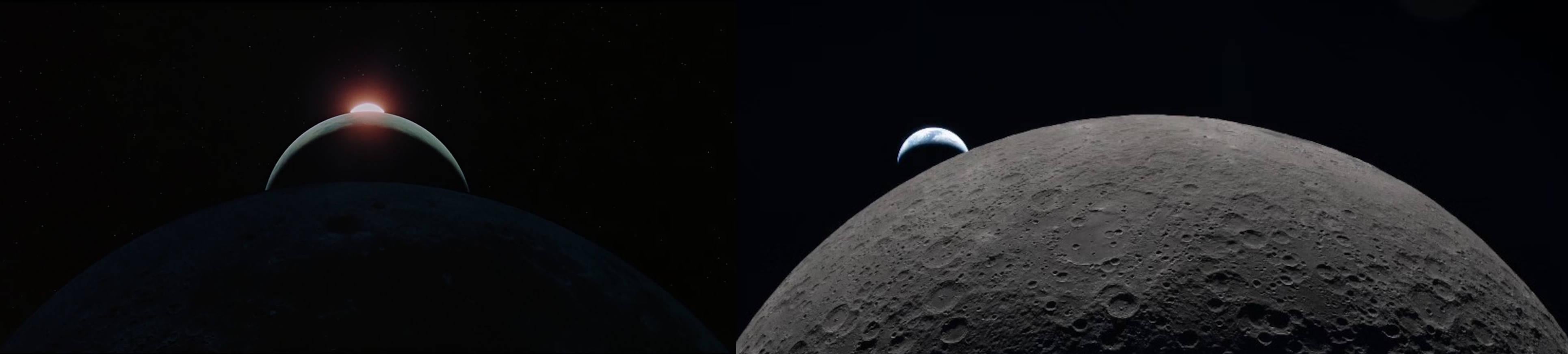 Fiction vs reality … 2001: A Space Odyssey opening on the left, Artemis II image on the right. by Adeldor